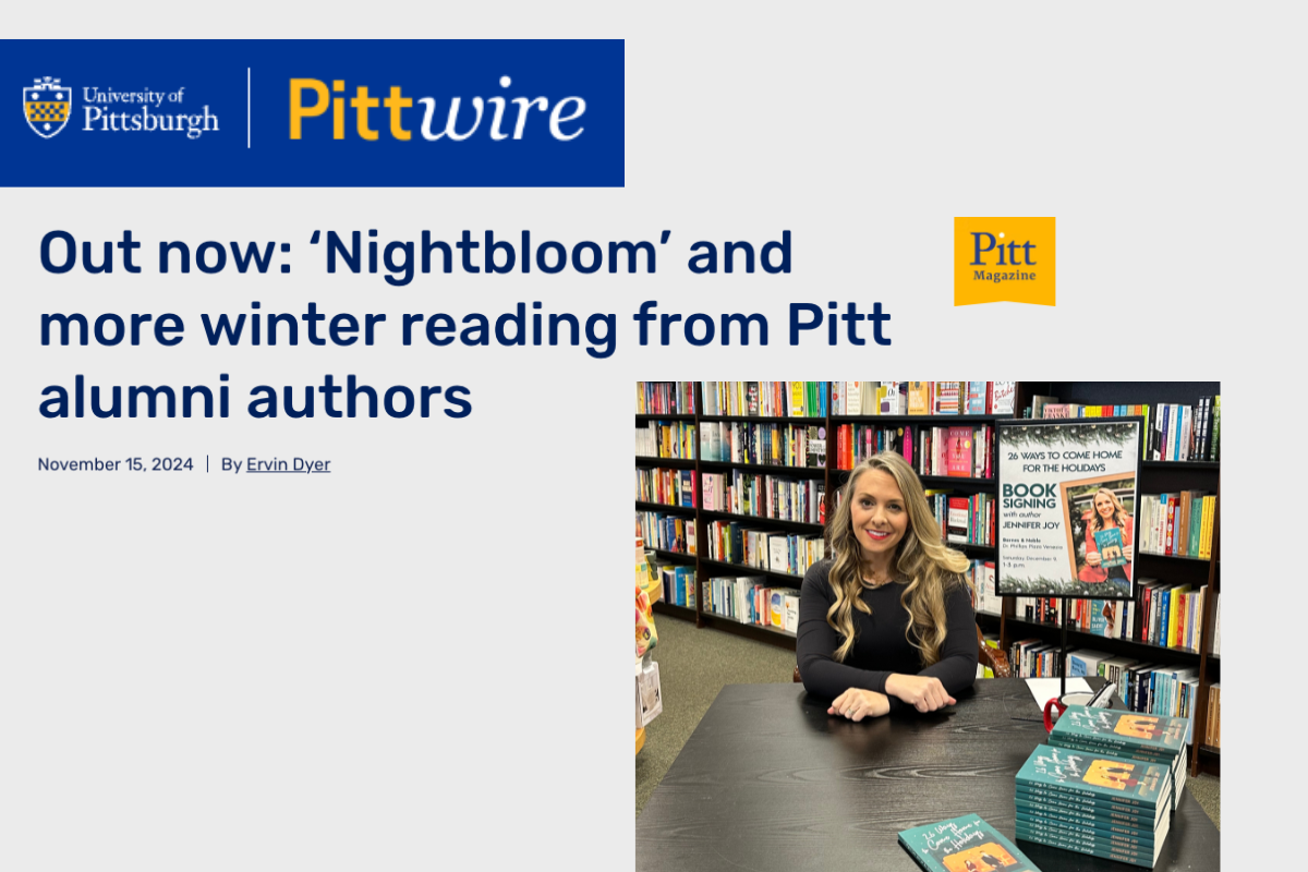 News Here’s the latest from Foxburg & Stern Books For the Press → Updates Dec 5, 2025 ‘The Widow of Hartforde’ Receives 5 Stars from The Historical Fiction Company In The News Dec 3, 2025 Independent Book Review: The Best Books We Read in 2025 Updates Sep 2, 2025 @TwinReadsandReds Unboxes ‘THE WIDOW OF HARTFORDE’ Updates Sep 1, 2025 Titles Now Available in UK, Canada Updates Aug 8, 2025 Independent Book Review: The Widow of Hartforde Updates Jun 7, 2025 Just announced: 26 WAYS TO COME HOME FOR THE HOLIDAYS wins the 2025 International Book Award, Romance Category Updates May 27, 2025 UPCOMING RELEASE: The Widow of Hartforde Updates Dec 4, 2024 #BookTok reviews ’26 Ways to Come Home For The Holidays’ Updates Nov 24, 2024 ’26 WAYS TO COME HOME FOR THE HOLIDAYS’ on Goodreads Most Anticipated Book for 2024 In The News Nov 15, 2024 [Pitt Magazine] Out now: ‘Nightbloom’ and more winter reading from Pitt alumni authors In The News Feb 29, 2024 [Independent Book Review] 17 Kindle Unlimited Fantasy Books You Should Read RIGHT NOW In The News Jan 3, 2024 [Kirkus Reviews] The Brothers Dragon featured in Volume XCII, No. 1 In The News Jan 3, 2024 [Independent Book Review] The Brothers Dragon Updates Dec 11, 2023 Photos: Jennifer Joy ’26 WAYS TO COME HOME FOR THE HOLIDAYS’ Book Signing In The News Dec 8, 2023 [Littsburgh] ‘The Brothers Dragon: Beyond Land’s End’ Q&A In The News Dec 4, 2023 [Harvard Magazine] ‘The Brothers Dragon’ featured on Holiday Reading List 2023 In The News Nov 22, 2023 [Pittsburgh Post-Gazette] Holiday Joy: Novella captures the magic of a 1940s Pittsburgh Christmas In The News Nov 22, 2023 [Pittsburgh City Paper] Jennifer Fickley-Baker revisits Pittsburgh past with 26 Ways to Come Home for the Holidays Events Nov 9, 2023 Book Signing: Jennifer Joy In The News Nov 9, 2023 [Littsburgh] ’26 Ways to Come Home for the Holidays’ Q&A